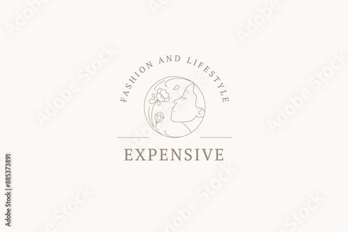 © provectors, Fototapeta premium Romantic woman face with flower outline logo design template for beauty brand vector illustration