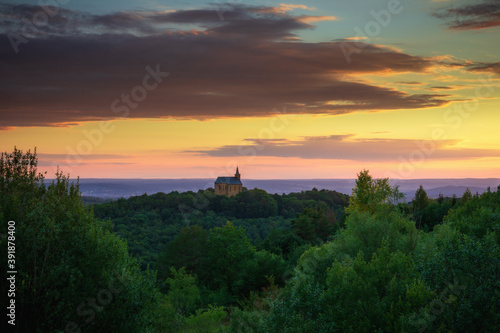 © andiz275, Fototapeta premium Romantische fränkische Sommerlandschaft im Abendrot in Bayern in Oberfranken bei Sonnenuntergang in den Hügeln