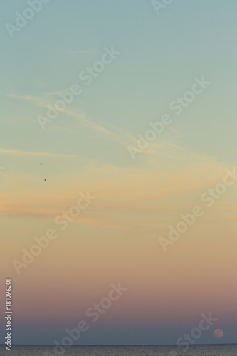 Fototapeta premium Romantischer Sonnenuntergang, Mond brennt am bunten Himmel