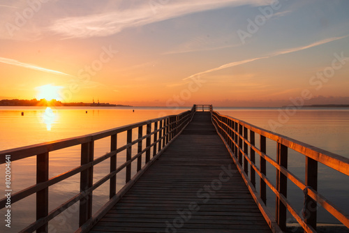 Obraz premium Romantischer Steg an der Ostsee im Sommer bei Sonnenaufgang.