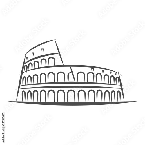 © Nat, Naklejka premium Rome city line style illustration. Colosseum famous landmark in Rome. Architecture city symbol of Italy. Outline building vector illustration. Travel and tourism vector illustration. Eps 10
