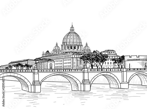 © Terriana, Fototapeta premium Rome cityscape with St. Peter's Basilica. Italian city famous landmark