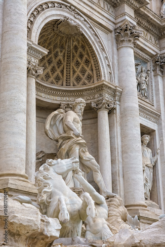 Fototapeta premium Rome, Italy. Detail of the Trevi Fountain featuring marble statues, sculpted...