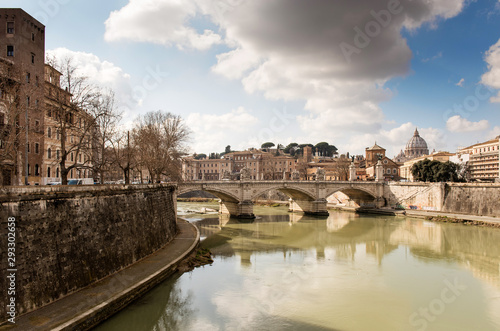 © lenaivanova2311, Fototapeta premium Rome, Italy, February 20, 2017 - view of Rome, Italy. Tiber River with bridges in Rome. Beautiful scenic panorama of Rome city.