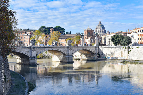 © Mark, Naklejka premium Rome, Italy - 26 Nov, 2022: View of St. Peter's Basilica and bridges over the Tiber river