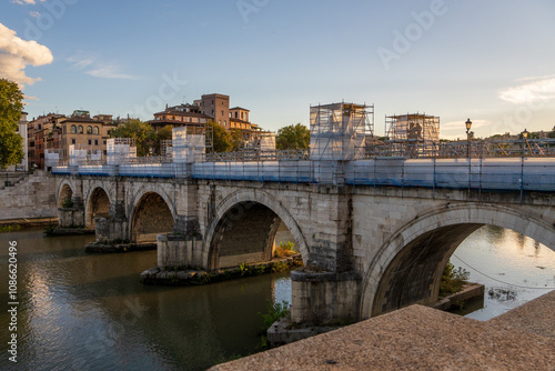 © Lomb, Naklejka premium ROME, ITALY - NOVEMBER 18, 2024: Renovation work in progress on the historic Ponte Sant'Angelo bridge as part of Rome's preparation for the 2025 Jubilee Year pilgrimage