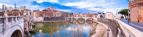 Fototapeta premium Rome Tiber river and Sant Angelo bridge panoramic view