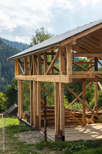 Obraz premium roof and wooden beams part of house construction traditional european