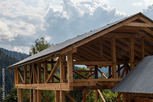 Fototapeta premium roof and wooden beams part of house construction traditional european