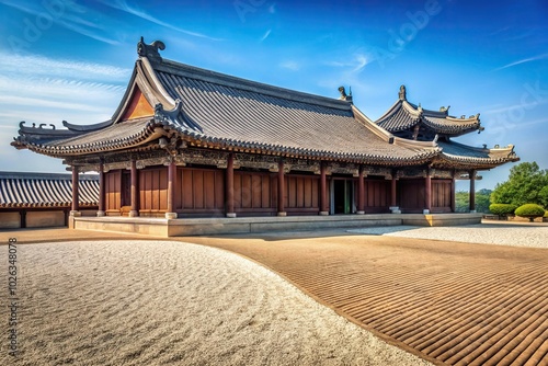 Obraz premium Roof of Chinese building covered in sand and gravel, Asymmetrical