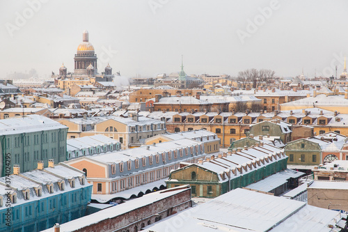 Obraz premium Rooftop cityscape of Saint Petersburg in winter time