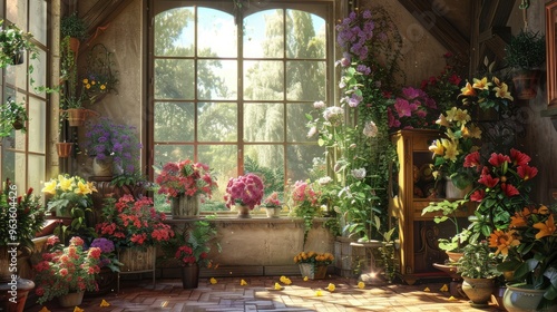 © Lasvu, Naklejka premium Room adorned with lovely flowers