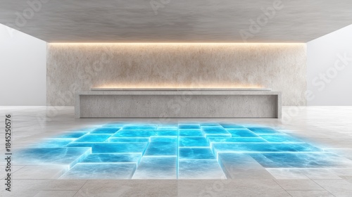 Fototapeta premium Room interior with pool and bench interior scene reveals pool and simple bench offering serene and functional space