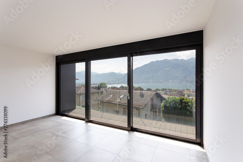 © alexandre zveiger, Obraz premium Room with black window overlooking Lake Maggiore