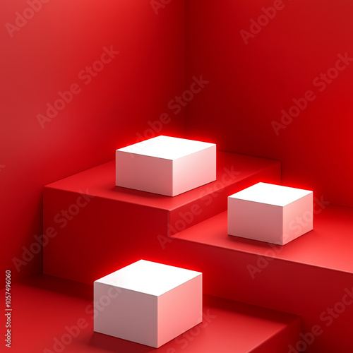 © fast high definition, Fototapeta premium room with red wall and spotlights