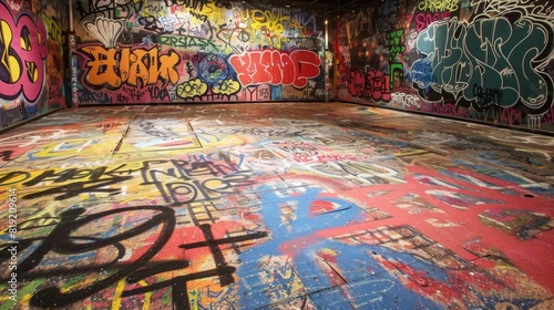 Obraz premium Room with walls and floor completely covered in graffiti art