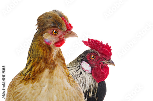 © fotomaster, Naklejka premium rooster and chicken isolated on white background