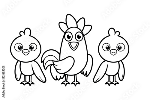 © NasimaAktar, Obraz premium Rooster and Chicks Coloring Page