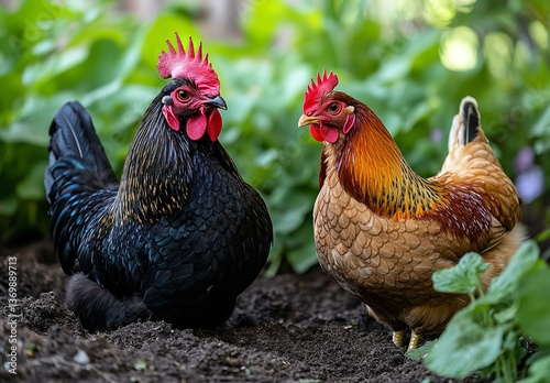 © Mimi, Fototapeta premium Rooster and Hen in Chicken Coop