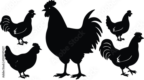 Fototapeta premium Rooster and Hen Silhouettes for Farm Animal