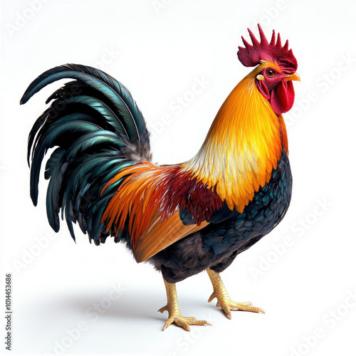 © sharafmaksumov, Fototapeta premium Rooster Crowing Isolated