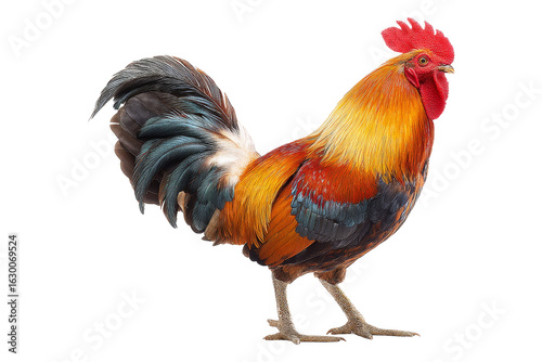Fototapeta premium Rooster displaying vibrant feathers farm animal