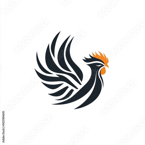Obraz premium Rooster logo design, wings spread, white background, graphic design
