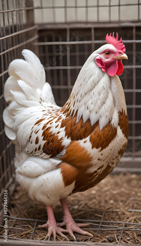 Fototapeta premium Rooster or hen in 9:16 Portrait format Vertical Farm animal Bird with red...