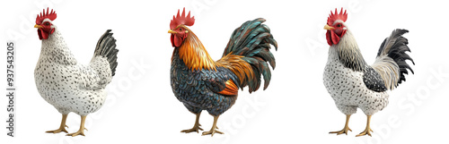 © Malika, Fototapeta premium Rooster set isolated on transparent background with vibrant feathers