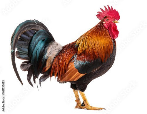 © oxie99, Fototapeta premium Rooster standing isolated on white background, cut out