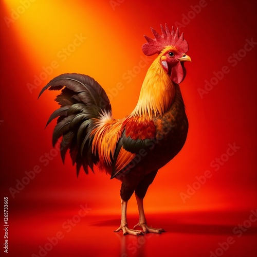 Fototapeta premium Rooster standing proudly with vibrant colors on red background