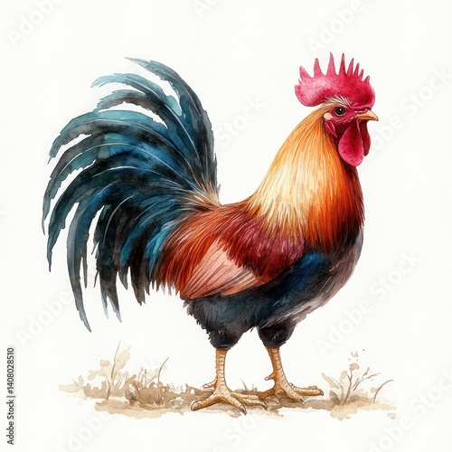 Fototapeta premium Rooster Watercolor Illustration Vibrant Colors Impressionist Style Soft...