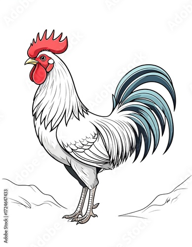 © Mugo, Fototapeta premium Rooster, white and teal plumage, standing proudly