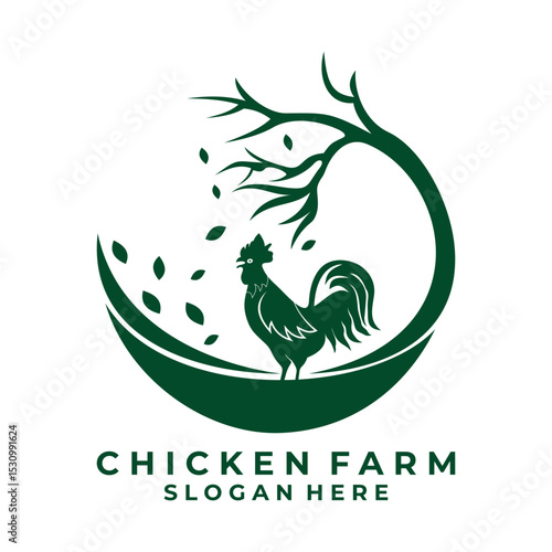 © Febrian, Obraz premium Rooster with Tree logo design vector template. Chicken logo design concept