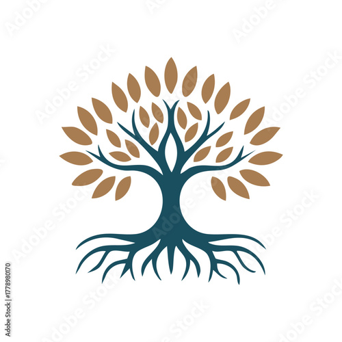 © MdBillal, Naklejka premium Rooted Tree of Life Logo Elegant Vector Icon
