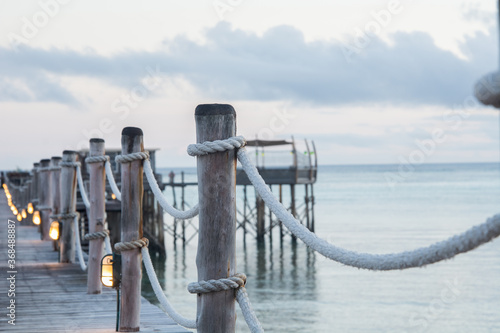 © Manyijnr, Fototapeta premium rope on the wooden pier