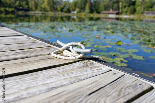 © Don Mroczkowski, Fototapeta premium rope on wooden dock in pond
