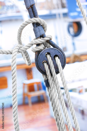 Fototapeta premium Ropes and fixing arrangements on a sailboat