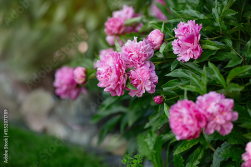 © ewa, Fototapeta premium Rosa Pfingstrosen im Sommergarten