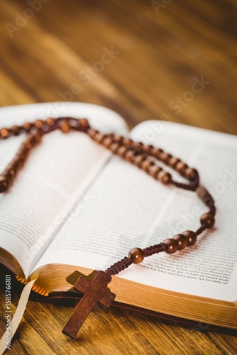 Fototapeta premium Rosary beds on bible book