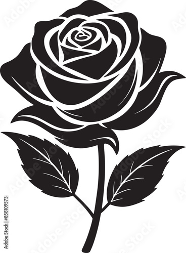 © Emon, Obraz premium Rose black vector icon on white background, coloring rose vector, red rose vector.