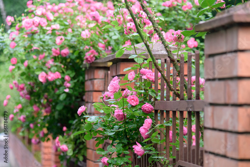 © Vitaliy Hrabar, Fototapeta premium rose bush flowers during blossoming after rain