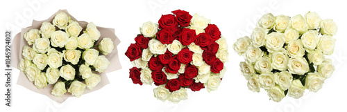 © New Africa, Obraz premium Rose flowers in bouquets isolated on white, set