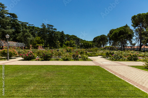 Fototapeta premium Rose Garden in Madrid. Botanical garden with different species of rare and...