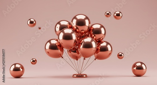 Obraz premium Rose Gold and White Shiny Balloons Floating Against a Light Gray Background