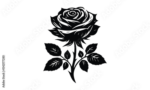 Obraz premium Rose Silhouette, Elegant Rose Silhouette Isolated on White Background