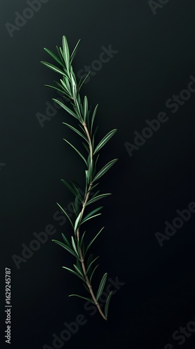 © kelu, Naklejka premium Rosemary sprig against dark background