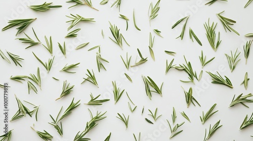 Naklejka premium Rosemary Sprigs Pattern Green Herbs on White Background