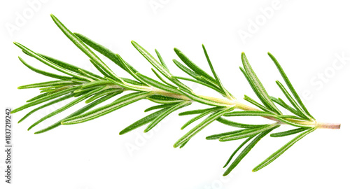© URSA Star, Fototapeta premium Rosemary twig and leaves isolated on white background. Rosemary top view. Rosemary full macro photo
