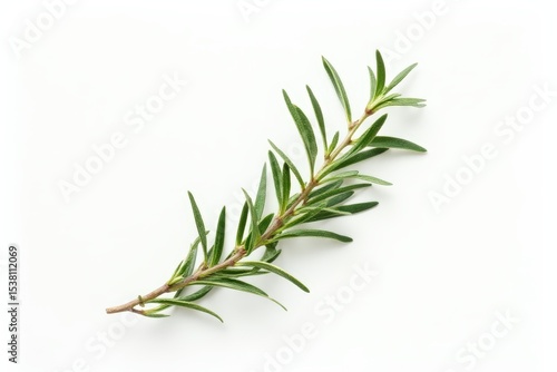 © ThomasLENNE, Fototapeta premium Rosemary twig and leaves isolated on white background. Top view. Flat lay